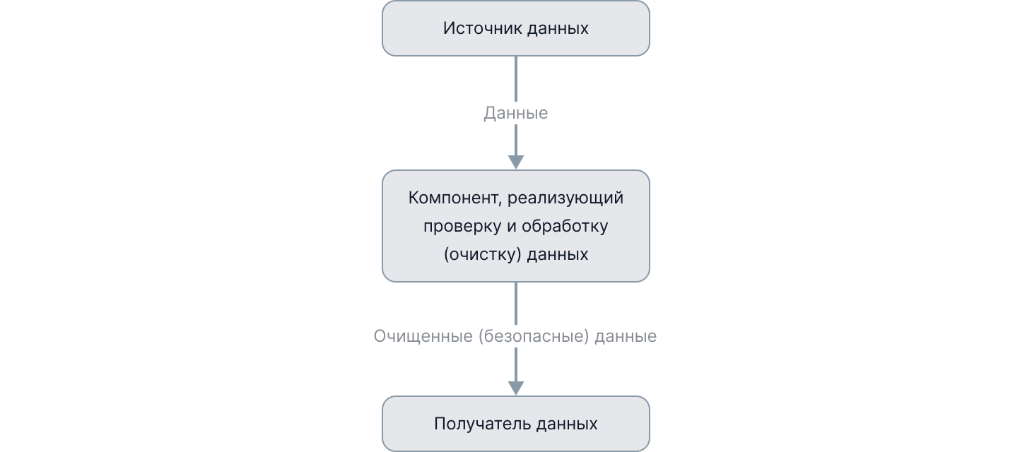 Крупные и сложные элементы системы (такие как базы данных, микросервисы и т.д.) обладают обширной поверхностью атаки, в связи с чем усложняется задача обеспечения безопасности и проведения проверок для установления доверия. Для уменьшения поверхности атаки следует заранее проводить проверку входных данных на их безопасность относительно этих элементов, в том числе, требуется проводить необходимую очистку этих данных от лексических и синтаксических конструкций, представляющих опасность в отношении потенциальных уязвимостей элементов системы. Подобные проверку и очистку следует вынести в отдельный, небольшой, изолированный компонент, отвечающий следующим требованиям: