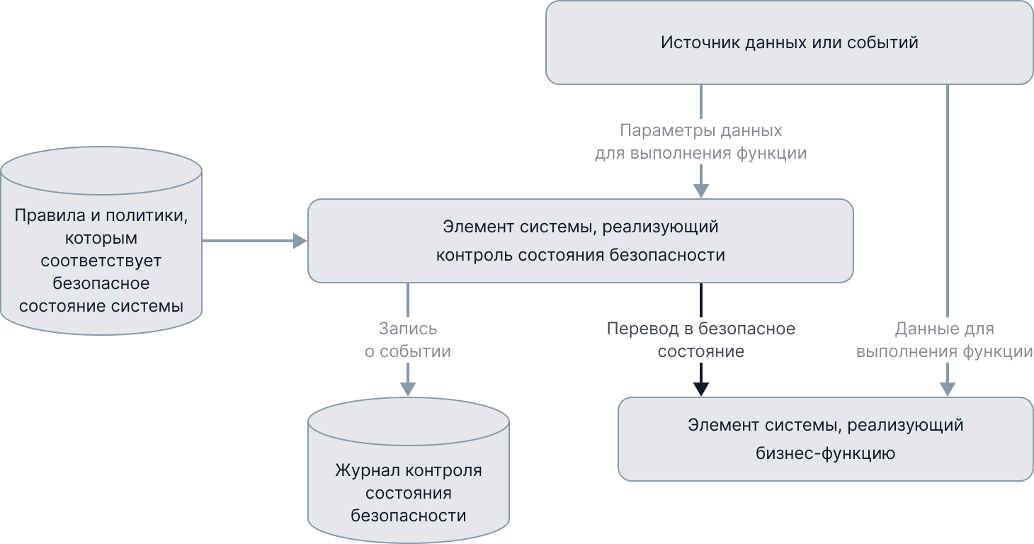 Допустимо реализовать несколько элементов системы, реализующих контроль состояния безопасности по различным параметрам, обеспечив запрет выполнения бизнес-функции по каждому каналу перевода в безопасное состояние и усилив тем самым контроль;